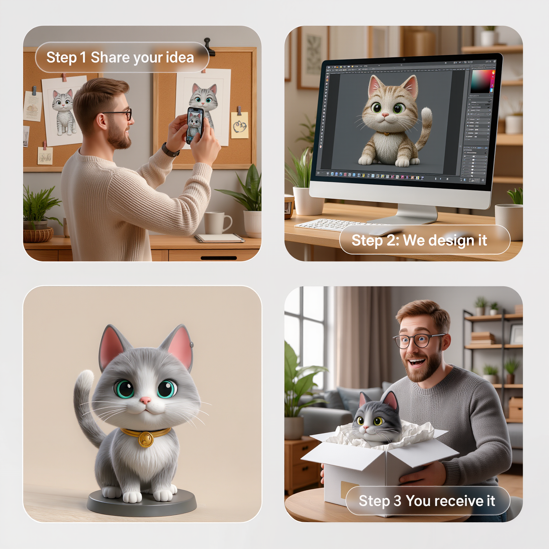 Breng jouw creativiteit tot leven met unieke 3D-creaties op maat. Van figuren tot bedrijfslogo's, wij realiseren jouw droom met professionele precisie.
